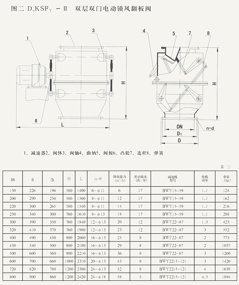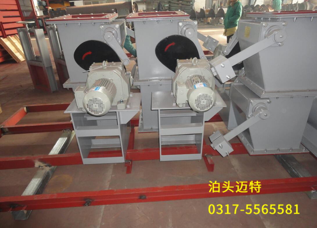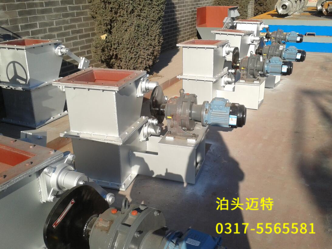 由減速器帶動傳動桿通過曲柄、凸輪及連桿分別帶動上、下兩傳動軸旋轉(zhuǎn),交互開啟,通過配備的杠桿系統(tǒng)或拉伸彈簧,保證閥板可靠的復(fù)位,防止野風(fēng)的吹入,依確定的開閉頻率完成系統(tǒng)的給卸料。