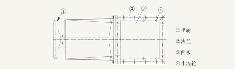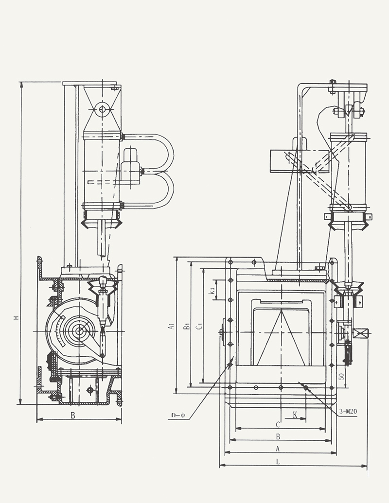 用于B250、B300、B400、B500庫(kù)底卸料裝置,本閥與庫(kù)底底座相連接。