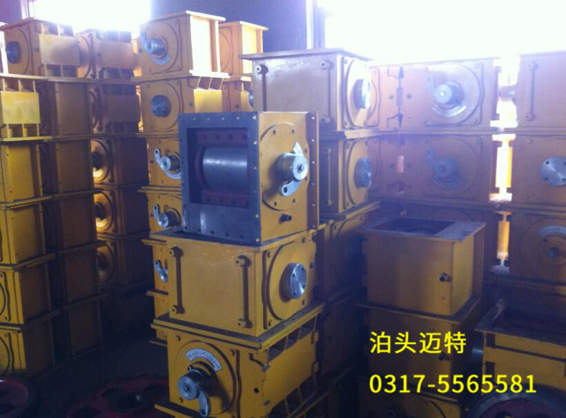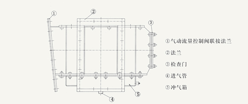 用于B250、B300、B400、B500庫(kù)底卸料裝置,本箱與庫(kù)底閘門(mén)相連接,分料口和氣動(dòng)流量控制閥相連接