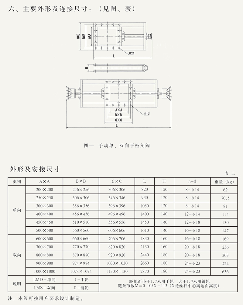 該閘門主要由框架、絲桿螺母、手輪、鏈輪、板組成,手輪(鏈輪)轉(zhuǎn)動(dòng),絲桿帶著絲桿螺母和曾板作水平方向往復(fù)運(yùn)動(dòng),達(dá)到閥門的啟閉目的。