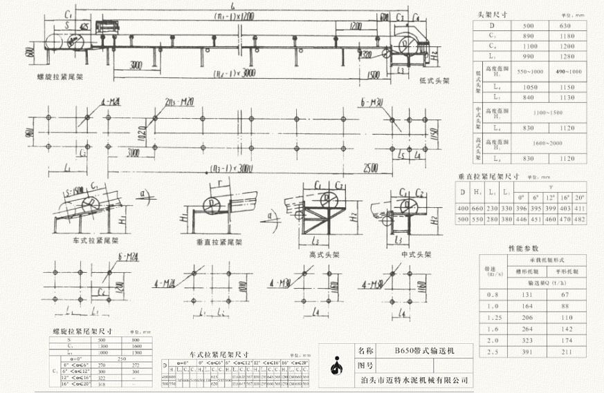 本系列按帶寬為:500、650、800、1000、1200、1400毫米等六種規(guī)格。