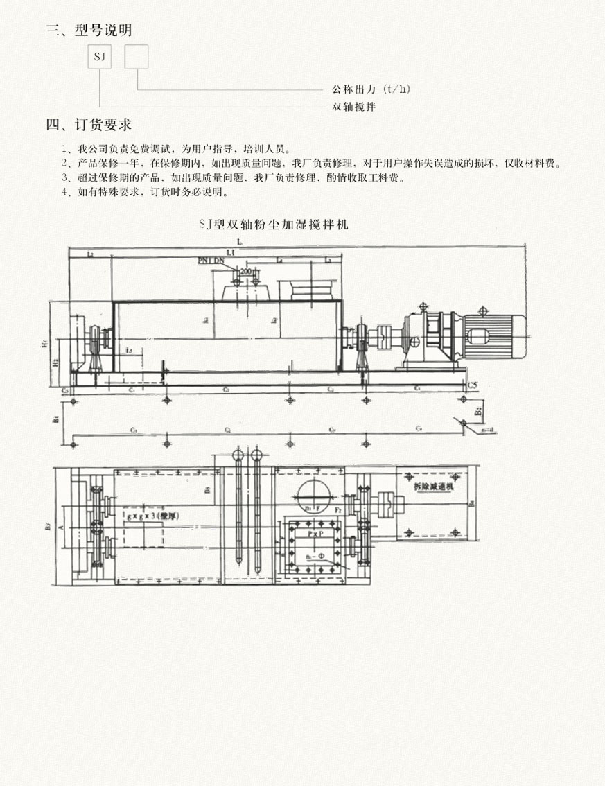 SJ型雙軸攪拌機(jī)是將粉狀物料進(jìn)行噴水?dāng)嚢琛⒒旌系脑O(shè)備。主要使用在火力發(fā)電廠的除塵器下,也可供化工、冶金、礦山、建材等行業(yè)使用。通過控制加水量,以達(dá)到核實(shí)的濕度要求。采用兩組螺旋葉片進(jìn)行攪拌。攪拌效果高,占地面積少。螺旋葉片采用高耐磨特種合金或復(fù)合陶瓷,使用壽命長(zhǎng)。雙軸攪拌機(jī)采用擺線針輪減速器傳動(dòng),轉(zhuǎn)動(dòng)平穩(wěn)。噪音低。雙軸攪拌機(jī)從頂部進(jìn)料,底部排料,結(jié)構(gòu)合理。各結(jié)合之間的密封嚴(yán)密,運(yùn)行平穩(wěn)。雙軸攪拌機(jī)舍友加濕噴水系統(tǒng),保證噴水均勻,調(diào)節(jié)供水量來滿足需要。采用手壓油泵集中供給四個(gè)傳動(dòng)軸承潤(rùn)滑油脂,方便設(shè)備的使用維護(hù),具有省時(shí)的特點(diǎn)。